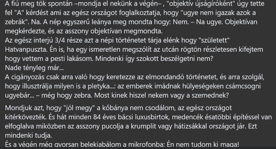 Akkor lenne elviselhetőbb ország a miénk, ha akár a mostani miniszterelnökkel kapcsolatban a tényleges tettei és nem vélt cigány származása lenne a megítélésének alapja. ”