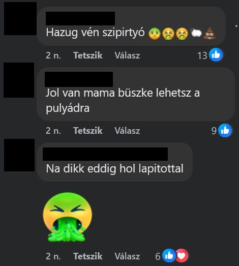 Az igazán gyomorforgató tartalmakat azonban a kommentelőknek sikerült produkálni, nemcsak a két említett poszt alatt, hanem Facebook-szerte.