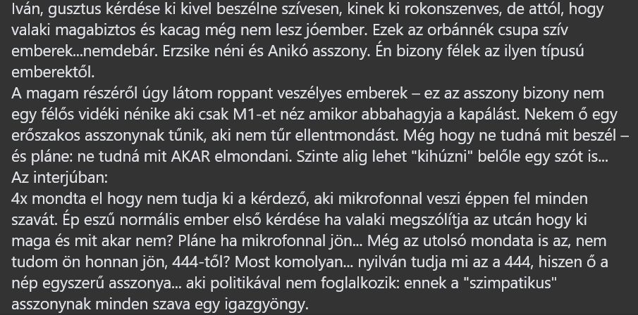 „Házhoz ment a lóf*szért a vén szipirtyó”, „mosolygós gyilkos”, „hazug banya”. Ilyen és ehhez hasonló kulturált megnyilvánulásokat kapott Orbán Győzőné.