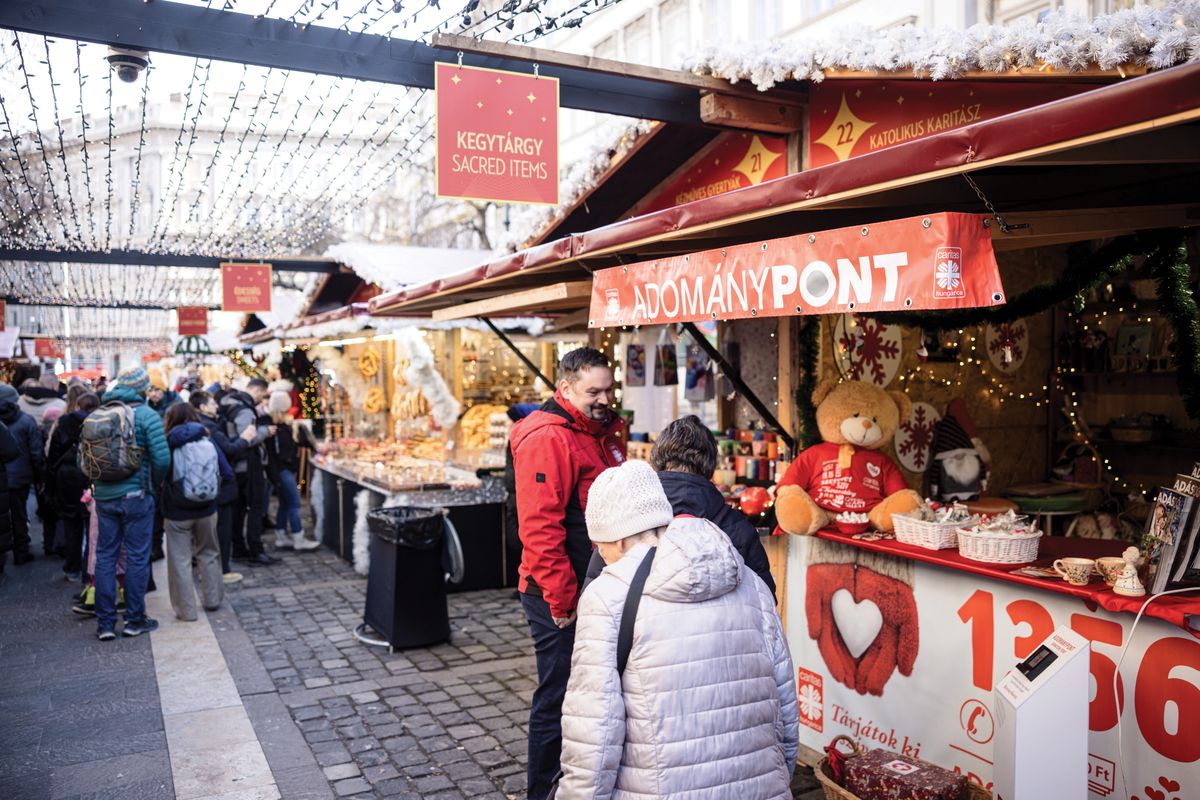 Európa legszebbnek kikiáltott adventi vásárában keringünk, keressük a Katolikus Karitász adománypontját. Erősen figyelnünk kell, nehogy elmenjünk mellette a nagy forgatagban, de az apró faház végül éppen szerénységével hívja fel a figyelmünket: megérkeztünk. Körülöttünk mindenfelé árukavalkád, magyar szót nem nagyon hallani – sőt, egy szót is alig hallani a hangos karácsonyi egyenzene miatt –, de azért igyekszünk tudatni a pult mögött álló Angelikával, hogy mi járatban vagyunk. Már vártak bennünket.