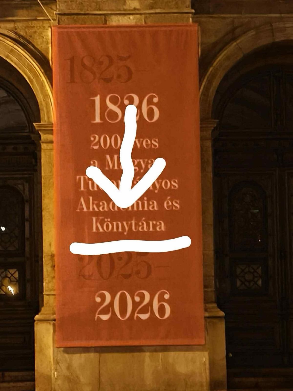 Meghökkentő képek landoltak kora reggel szerkesztőségünk postaládájában: egy olvasónk hívta fel a figyelmet a Magyar Tudományos Akadémia székházára kitűzött molinón szereplő ordító hibára. A bicentenárium alkalmából kihelyezett transzparensen az olvasható, hogy: