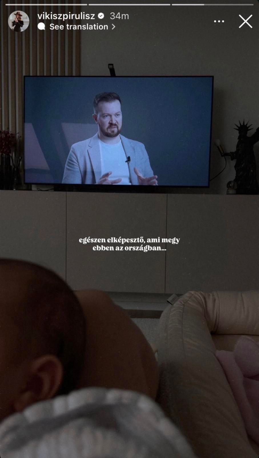 Most a milliomos tiszás influenszer, Halmosi Viktória, illetve házassága óta már Szpirulisz Viktória is bekajálta a kitalált történetet és sajnos követőinek is terjeszti a mesét. Instagram-sztorijában osztott meg egy fotót arról, hogy épp a Szabóval készült interjút nézi. Hozzátette: