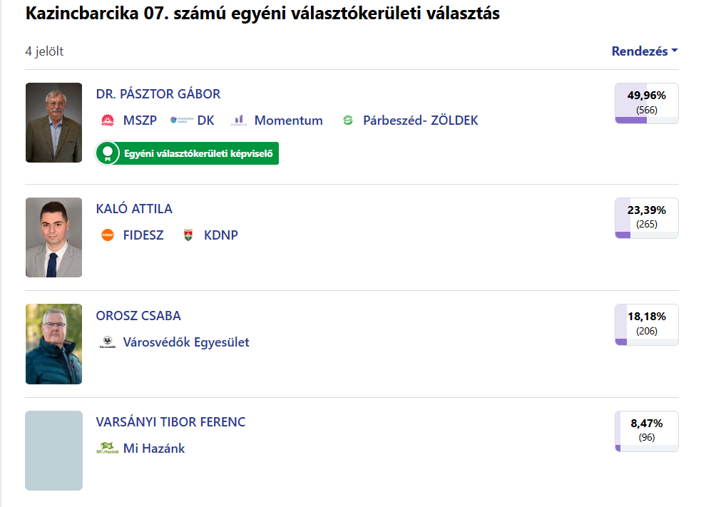 Nagy Zoltán, a Fidesz–KDNP jelöltje 397 szavazattal megnyerte a balmazújvárosi 7. számú egyéni választókerületben tartott időközi önkormányzati választást. A Közösen Balmazújvárosért Egyesület jelöltje, Molnár Péter 369 voksot kapott, míg a függetlenként induló Béresné Lőrincz Erzsébetre 77-en szavaztak. Az alulmaradt jelölt ugyan „civilként” indult, ám valójában a Tisza támogatta, maga is bevallotta nyilvánosan, hogy a Tiszával szimpatizál. A Fidesz-győzelem abból a szempontból is nagy dobás, hogy ahol időközit tartottak, ott utoljára 2014-ben nyert a Fidesz.