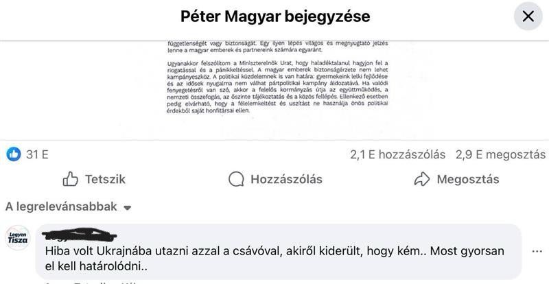 Van olyan hozzászóló, aki egyenesen hibának nevezte, hogy Magyar Péter többször is Ukrajnába utazott, ahol Tseber Rolanddal, az ukrajnai kém barátjával találkozott.