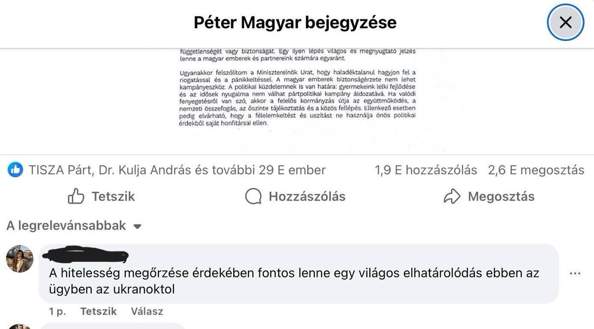 A Tisza Párt elnökének követői is azt szeretnék, ha Magyar Péter világossá tenné Zelenszkijjel és az olajblokáddal kapcsolatos álláspontját. Egyikük úgy fogalmaz,