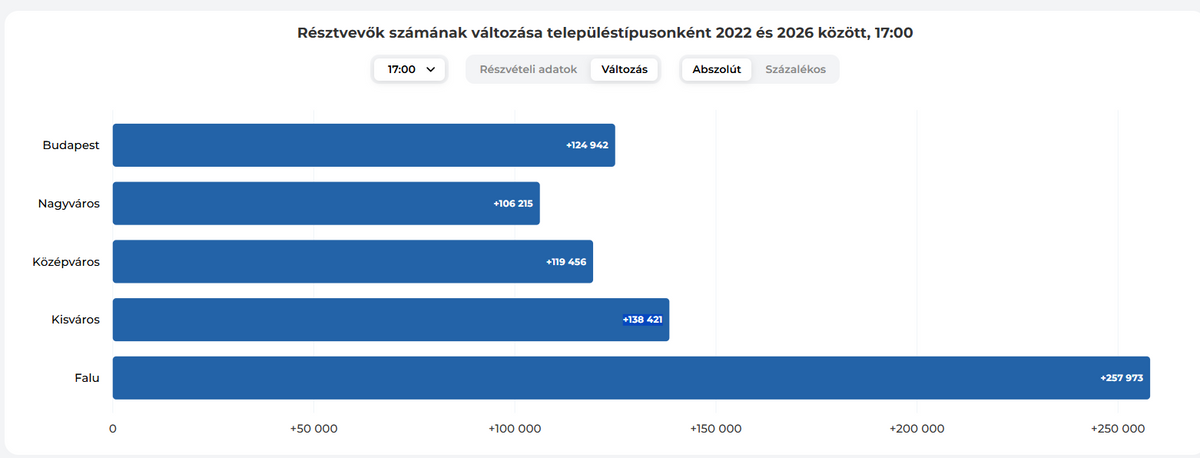 Alább látható a teljes táblázat a különféle településkategóriában történt részvételnövekedésről: