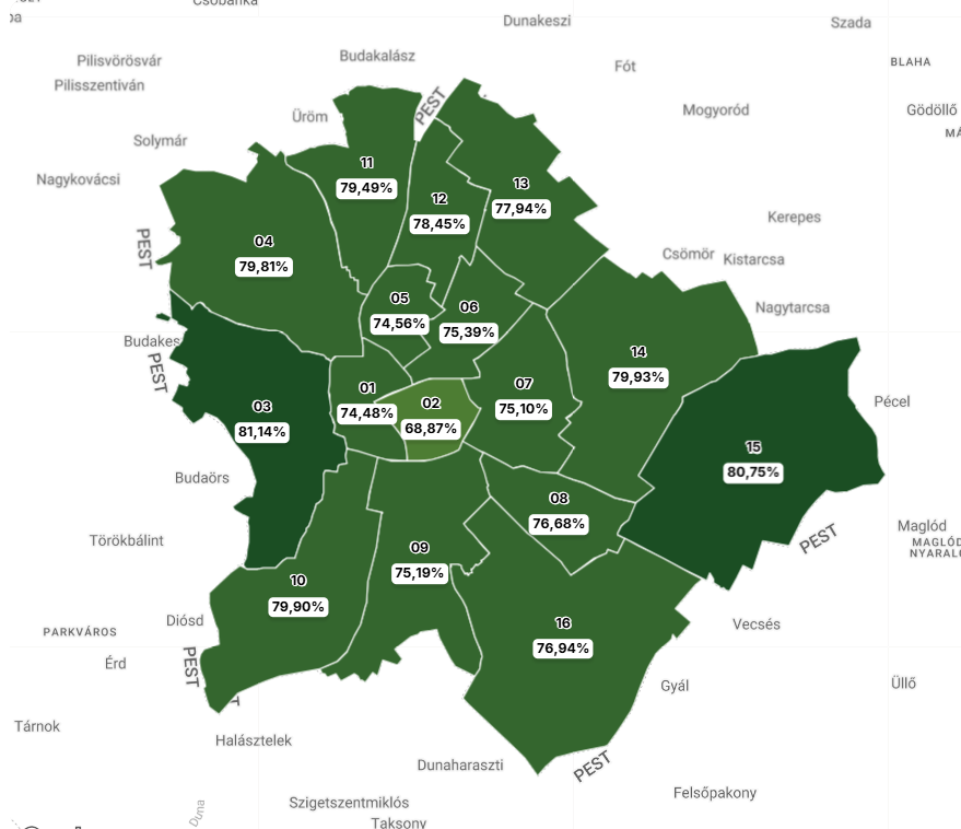 Budapesten a délután ötórás részvételi adatok szerint a legmagasabb részvételt a 3-as számú választókerületben (Hegyvidék és Újbuda egy része) regisztrálták. Ott 81,14 százalék voksolt.