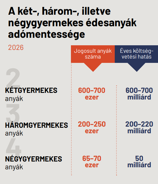 A szakértő hozzáteszi: hogy a negyven év alatti, kétgyermekes édesanyák, valamint a harminc év alatti édesanyák szja-mentessége mekkora segítség, az a jövedelem nagyságától is függ. Általánosan igaz azonban, hogy körülbelül 20 százalékos bérnövekedést jelent, ha az édesanya bruttó keresete nem változik.