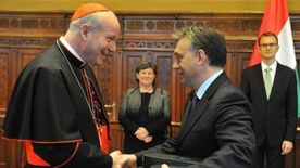 A kereszténység szilárd alapjára épülő Európa fontosságát hangsúlyozta Orbán Viktor miniszterelnök csütörtökön a Parlamentben, ahol átadta a Magyar Érdemrend nagykeresztje kitüntetést Christoph Schönborn bíborosnak, bécsi érseknek. A ceremónián részt vett Semjén Zsolt, Balog Zoltán és Erdő Péter is.