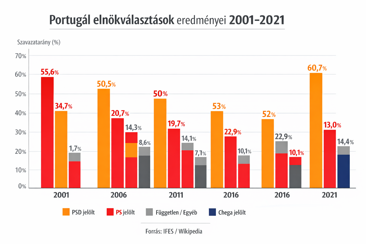 Portugália az elmúlt három év hetedik választására készül január 18-án. Ezúttal a luzitánok arról döntenek, ki töltse be az elnöki posztot az elkövetkező öt évben. A legutóbbi közvélemény-kutatások rendkívül szoros első fordulót jósolnak, amely után szinte biztosan második forduló következik. Orbán Viktor szövetségese, André Ventura nagyon jól áll.