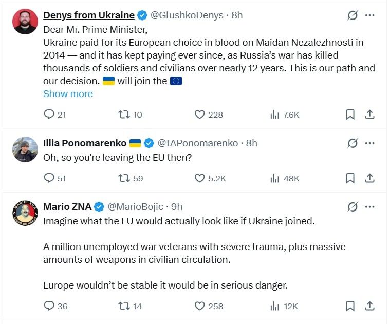 – üzente egy másik X-felhasználó Orbánnak, majd hozzátette, Ukrajna a vérével fizetett azért, hogy az unió tagja lehessen.
