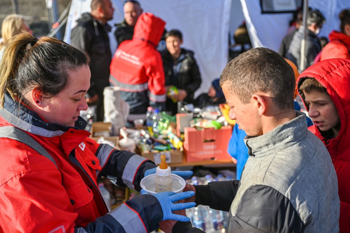 Menekültek ellátása a beregsurányi határátkelőnél Forrás: Majoros Árpád Csaba / Magyar Máltai Szeretetszolgálat