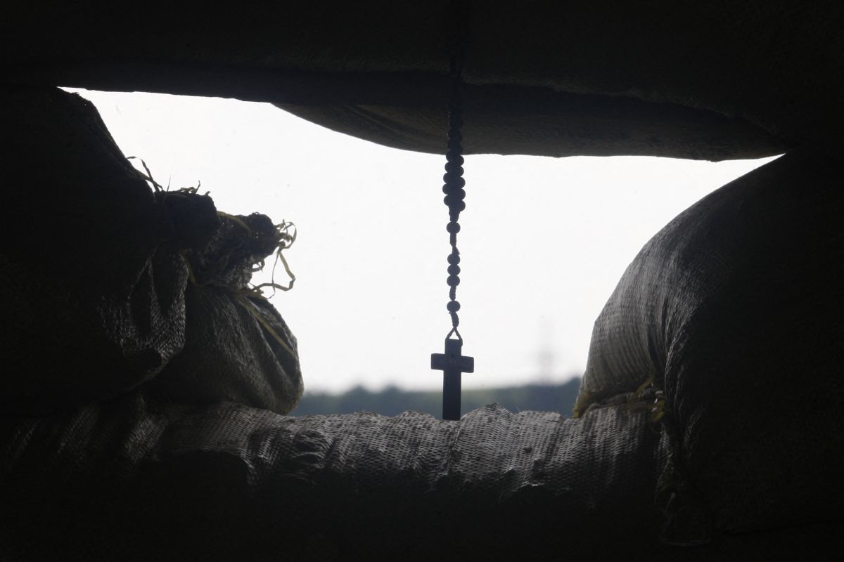 Kereszt a tűzvonalban, egy bunkerben Forrás: ANATOLII STEPANOV / AFP