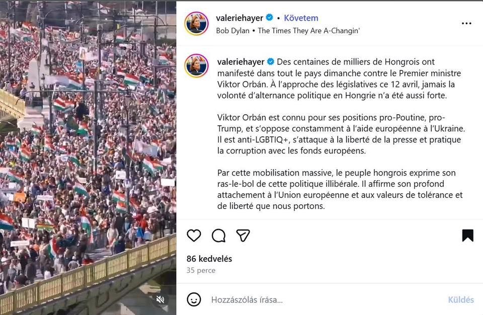 Valérie Hayer liberális EP-képviselő például nagyon benézett mindent: szerinte a Békemenet Pécsen volt és Orbán Viktor ellen vonultak az emberek.