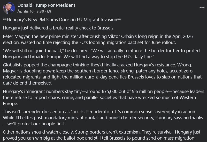A MAGA-mozgalomhoz kötődő oldalakon, csoportokban és politikai elemzők oldalain az elmúlt héten tömegével söpörtek végig azok a posztok, amelyek arról hivatottak meggyőzni a nyugati nagyközönséget, hogy Magyar Péter beteljesítheti, vagy akár túl is szárnyalhatja azokat a reményeket, amelyeket Orbán Viktorhoz fűztek a tengerentúlon.