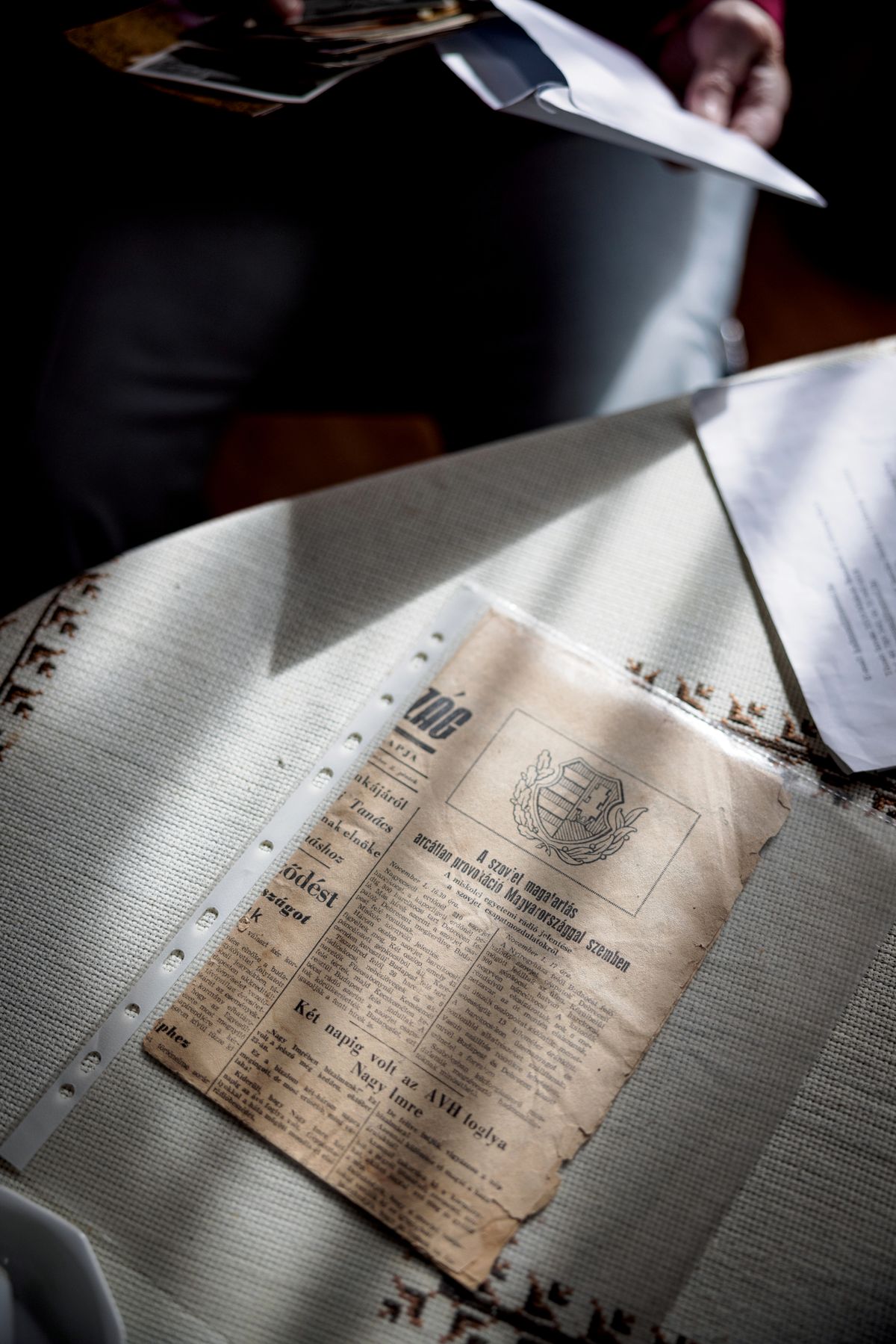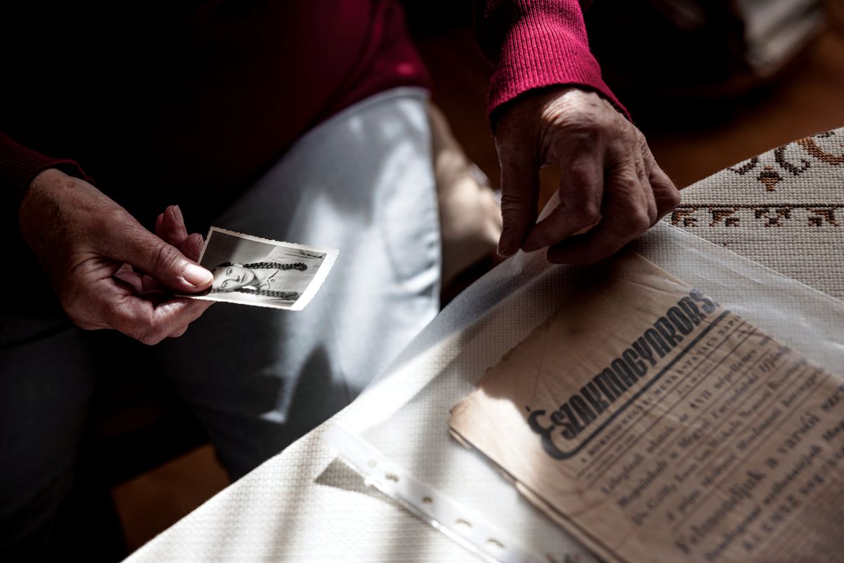 „Tízéves voltam 1956. október 23-án” – kezdi visszaemlékezéseit Laborfalusi Gabriella. Az ebédlőasztalánál ülve meséli el a hatvankilenc évvel ezelőtt történteket. A házban gyenge fények világítják meg a régi festményeket, amelyek szintén átélték a múlt század szörnyűségeit. „Édesanyámmal aznap zongorakottáért mentünk be a városba, és már visszafelé haladtunk, amikor a 2-es villamos helyett egy nagyon nagy tömeggel találkoztunk. A villamos sehol nem volt, a tömeg pedig egészen a Petőfi-szoborig hömpölygött. Gyalog kellett elmennünk a Gresham-palota előtti buszmegállóhoz, de még onnan is mentek az emberek, ezért átgyalogoltunk a hídon, és végül a Vérmezőn át értünk haza.”