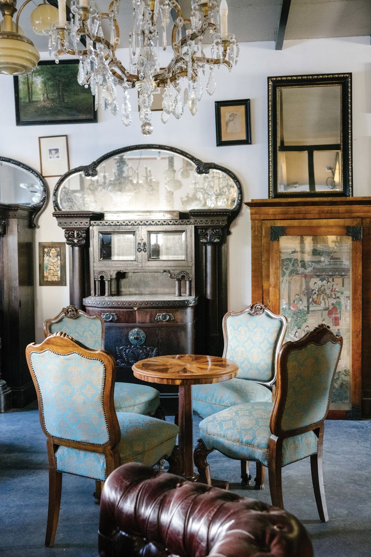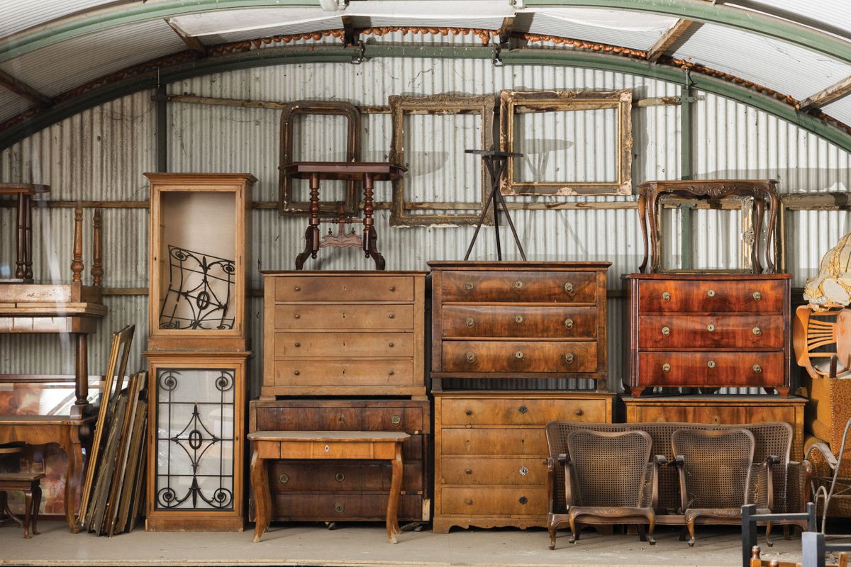 Óvatosan egyensúlyozunk a fal mellett körbefutó széles szegélyen, az óriási raktár mintha le- és felfelé is végtelenné tágulna, asztalok, fotelek, komódok, szekrények és még ki tudja hányféle tárgy mindenütt. Rögtön ki is szúrok két kiváló ebédlőszéket: épp ehhez hasonlót keresek már jó ideje; a nagyszüleimét annak idején botor módon kidobtuk, ma – legalábbis nekem – aranyat érnének. Pedig semmi különös: nem koloniál, antik vagy valahányadik Lajos korabeli darabok. Egyszerű, kényelmes ülőalkalmatosságok, normális háttámlával és pont jó magasságú karfával – ergonomikusak, mondanánk ma, holott csak józan ésszel, megbízható mesterségbeli tudással és a jövőbeli rendeltetési célt figyelembe véve készítették őket. Fából, természetesen, a világnak ebben a szegletében nincs helye a laminált lapoknak. Amikor ennek miértjéről kérdezem házigazdánkat, Szekeres Dávidot, azt válaszolja, az ok egyszerű:
