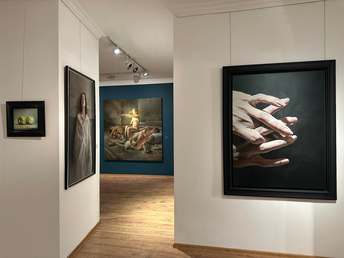 Hiperrealista festőművész – mondják gyakran Sándorfi Istvánról, de ő biztosan tiltakozna az e fajta szigorú kategóriákba sorolás ellen. És igaza is lenne, mert a valóban aprólékos gonddal és bravúros technikai tudással megfestett olajképein mindig van egy kicsi „hibádzó” részlet – egy-egy szándékosan elmázolt kéz, elmosódó lábfej, színben-korban oda nem illő alak, véletlennek látszó, de nagyon is tudatosan átgondolt „felesleges” ecsetvonás –, amely megtöri a felszínen fotószerűen tökéletesnek látszó hatást.