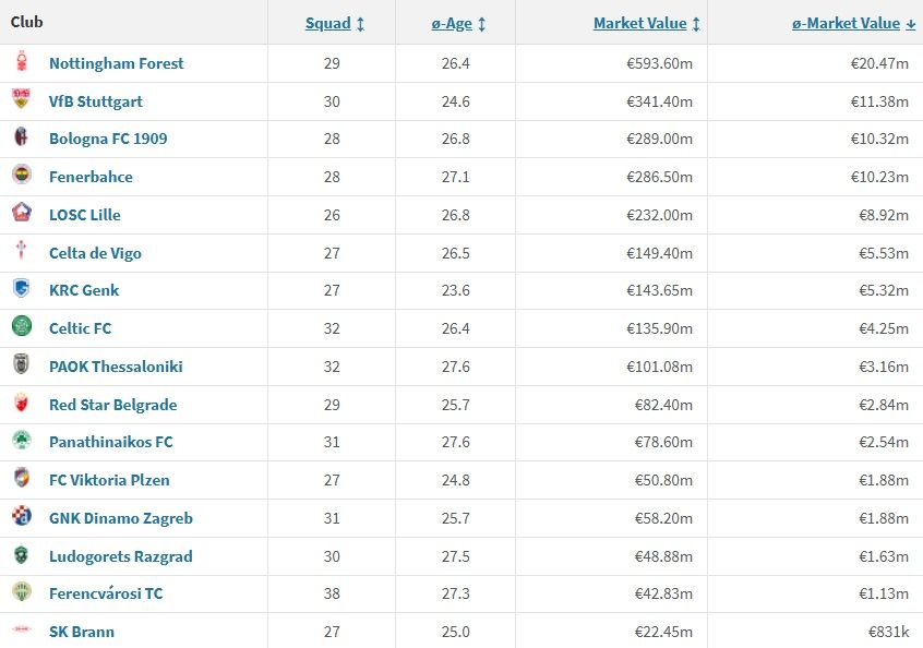 És valóban: a 36 fős mezőnyben mindössze öt olyan gárda van, amelynek a becsült piaci keretértéke kisebb, mint a magyar bajnoké (42,83 millió euró). Közülük ráadásul csak egy jutott tovább, a népligetiek pedig a következő körben pont egy olyan riválissal játszanak, amely csupán néhány millióval ér többet.